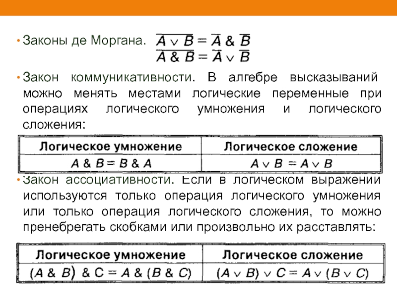 Вопрос 5. Логические законы и правила преобразования логических выражений.