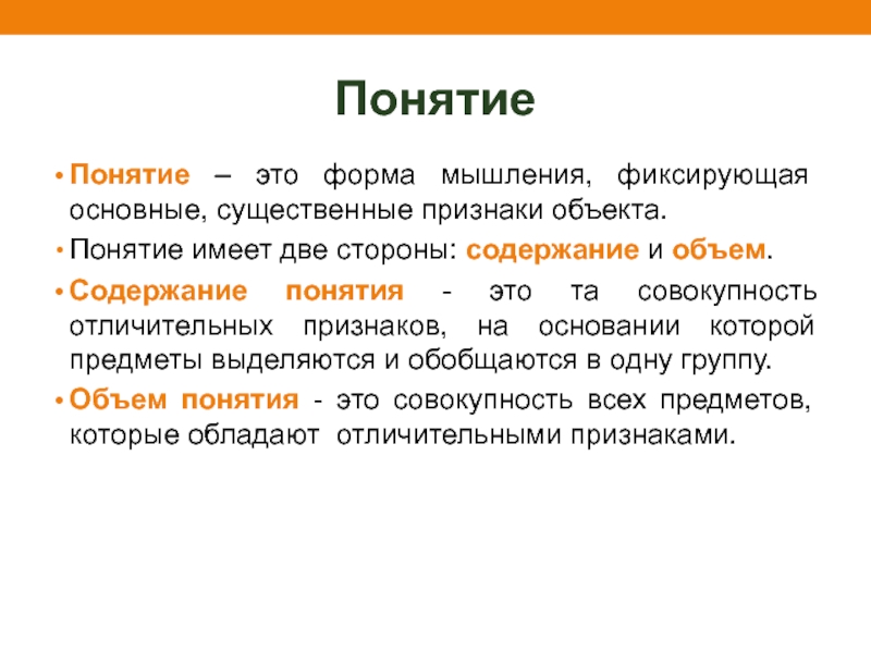 Понятие – это форма мышления, фиксирующая основные, существенные признаки объекта.