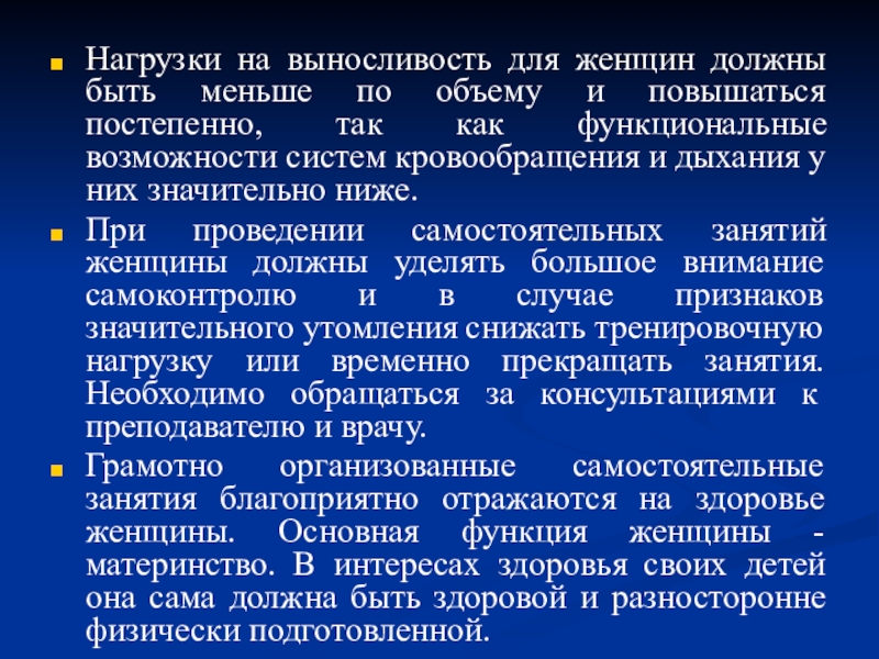 5. Особенности самостоятельных занятий для женщин.