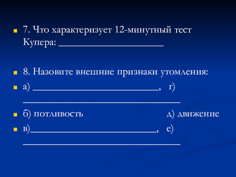 7. Что характеризует 12-минутный тест Купера: ____________________