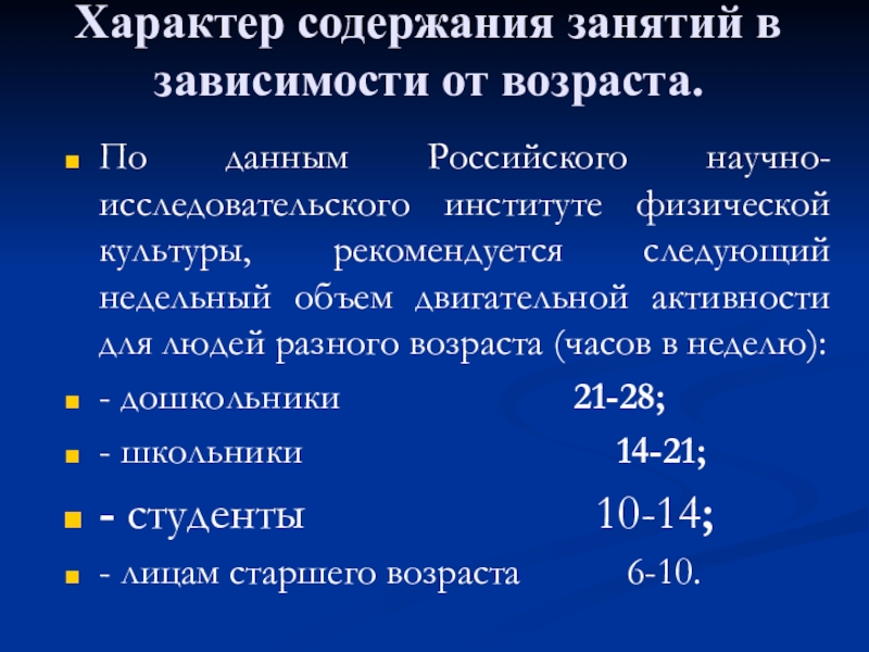 4. Характер содержания занятий в зависимости от возраста.
