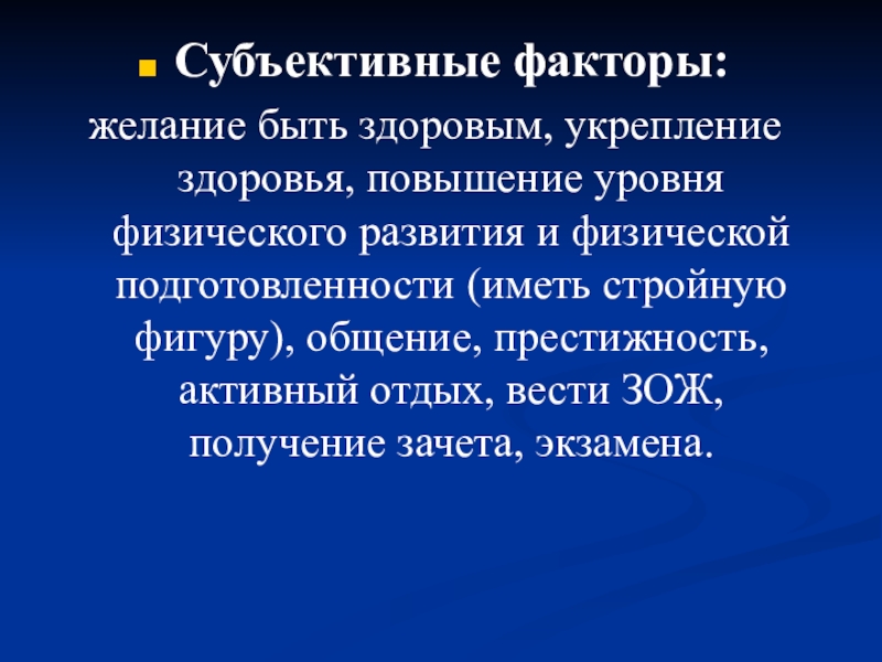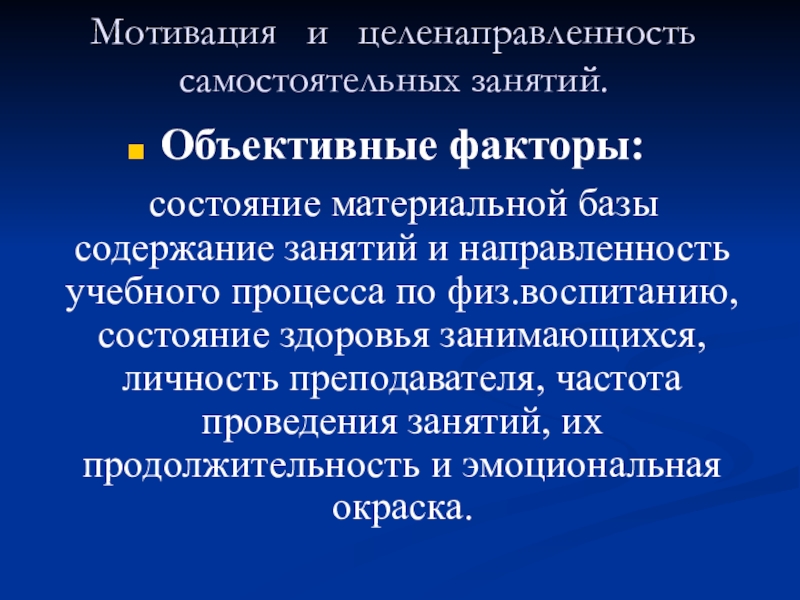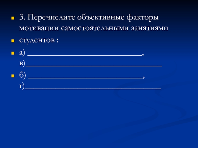 Слайд 663. Перечислите объективные факторы мотивации самостоятельными занятиями