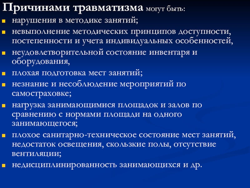 Слайд 59Причинами травматизма могут быть: