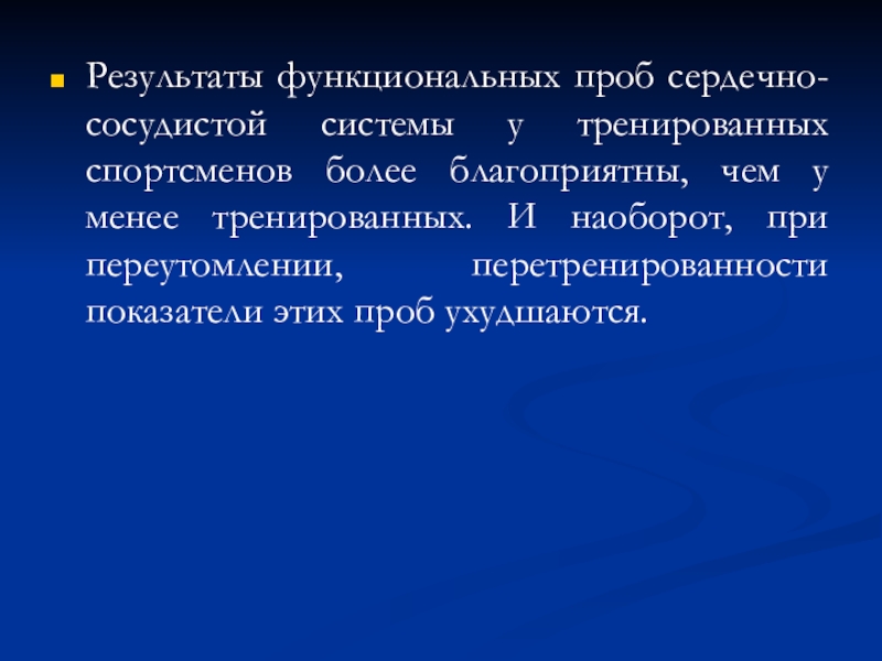 Слайд 57Результаты функциональных проб сердечно-сосудистой системы у тренированных спортсменов более благоприятны,