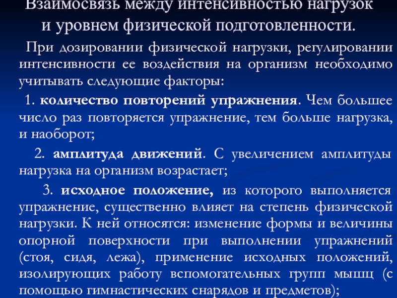 8. Взаимосвязь между интенсивностью нагрузок и уровнем физической