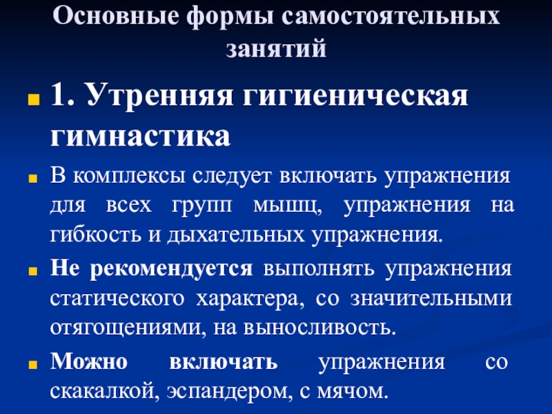 2. Формы и содержание самостоятельных занятий. Утренняя