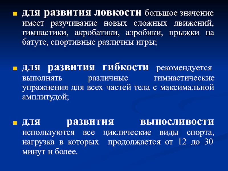 Слайд 21для развития ловкости большое значение имеет разучивание новых сложных движений,