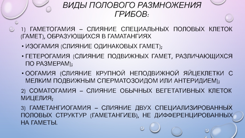 Слайд 9Виды полового размножения грибов: