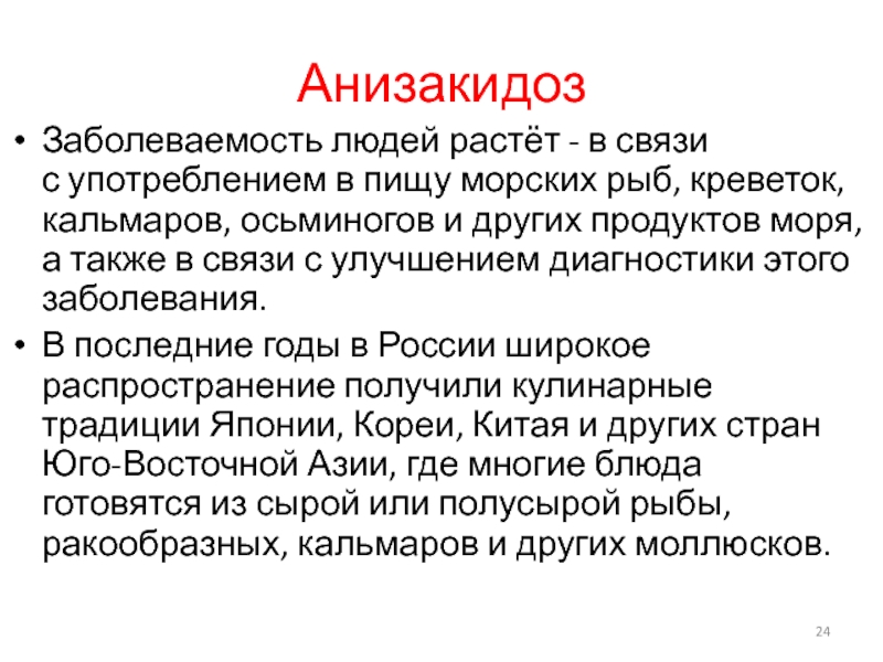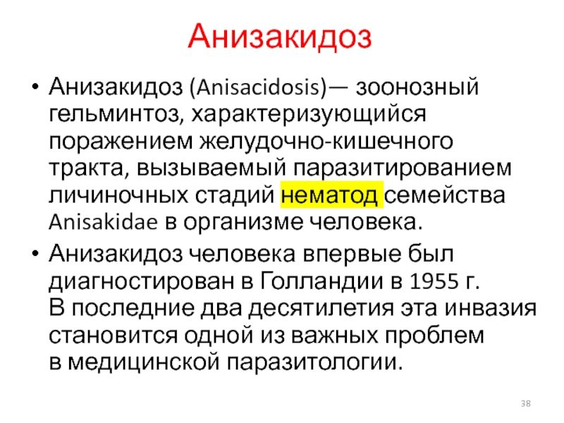Анизакидоз (Anisacidosis)— зоонозный гельминтоз, характеризующийся поражением желудочно-кишечного тракта, вызываемый паразитированием личиночных