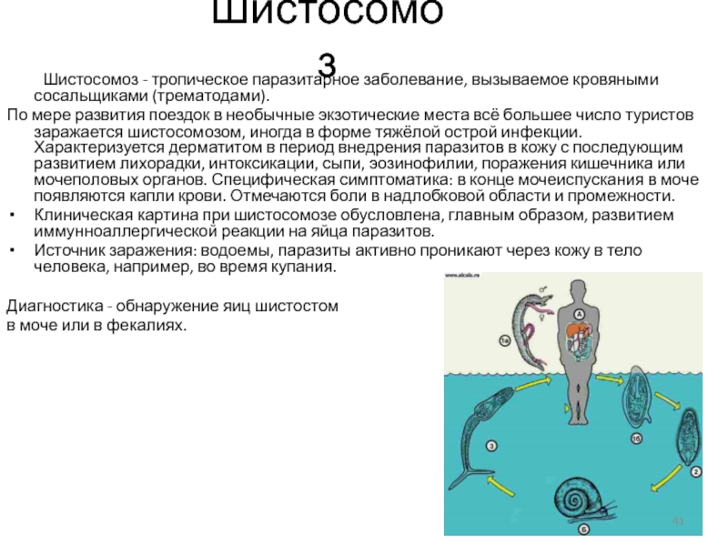 Шистосомоз - тропическое паразитарное заболевание, вызываемое кровяными сосальщиками (трематодами).