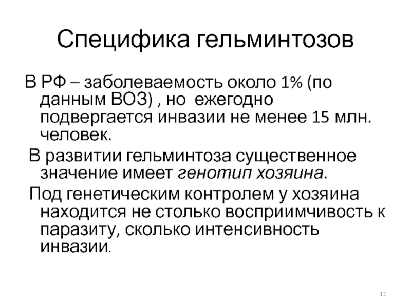 Под генетическим контролем у хозяина находится не столько восприимчивость к паразиту, сколько интенсивность инвазии.