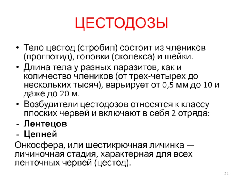 ленточные черви Cestoidea- цестоды (карликовый цепень, свиной цепень)