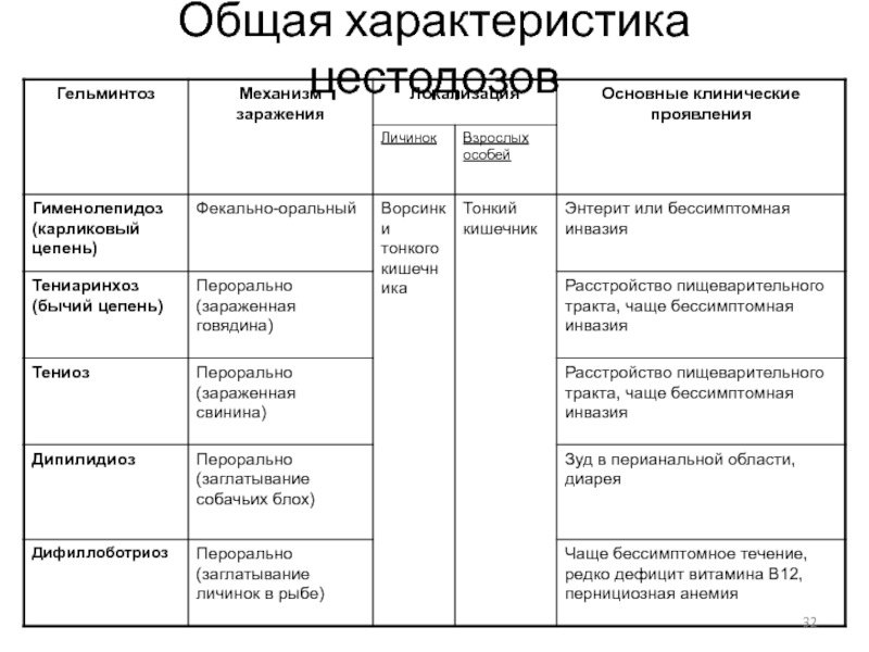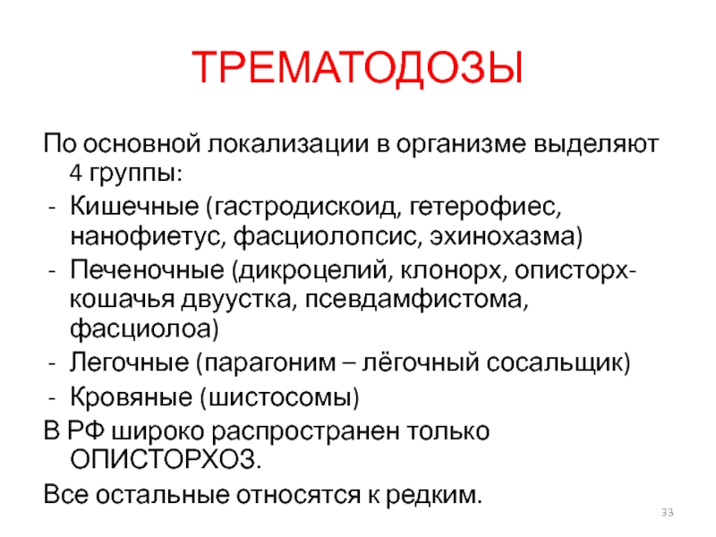 («Нематодозы»; «Цестодозы»; «Трематодозы»)