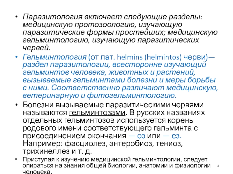 Приступая к изучению медицинской гельминтологии, следует опираться на знания общей биологии, анатомии и физиологии человека.