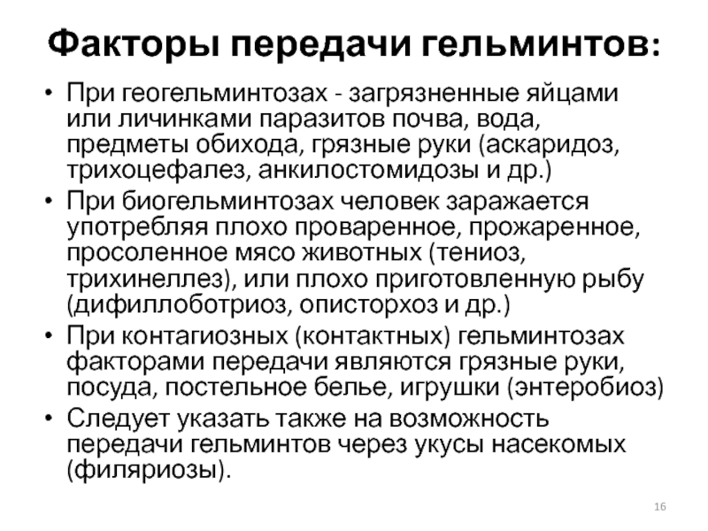 Передача возбудителей практически всех геогельминтозов осуществляется