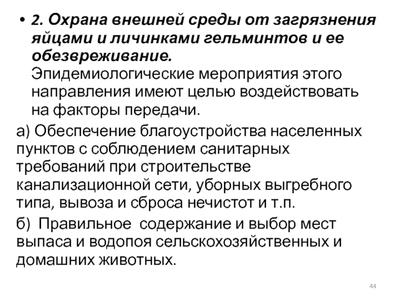 Слайд 442. Охрана внешней среды от загрязнения яйцами и личинками гельминтов