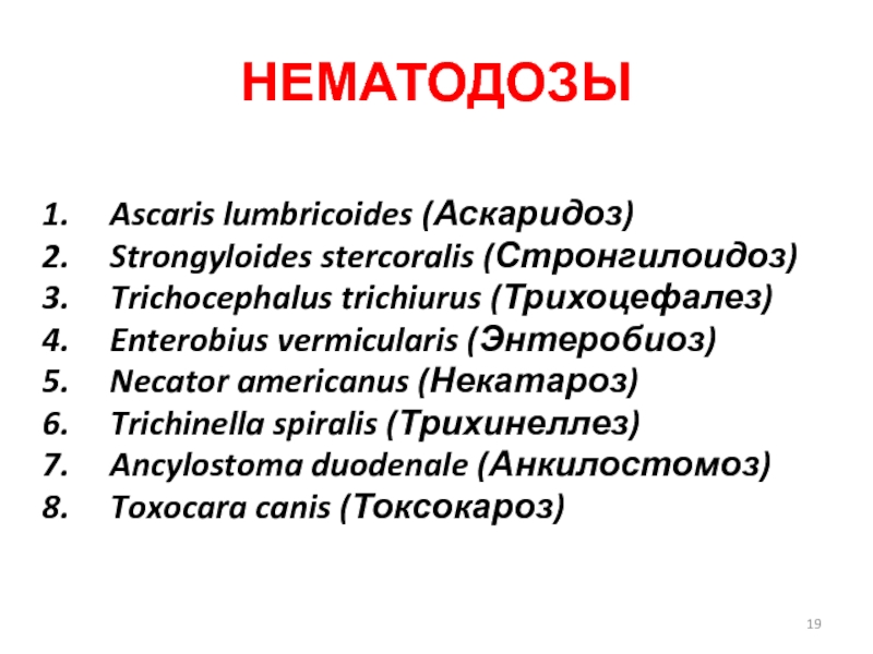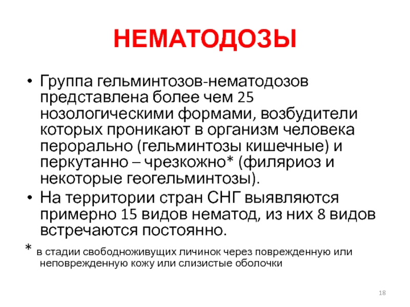 Группа гельминтозов-нематодозов представлена более чем 25 нозологическими формами, возбудители