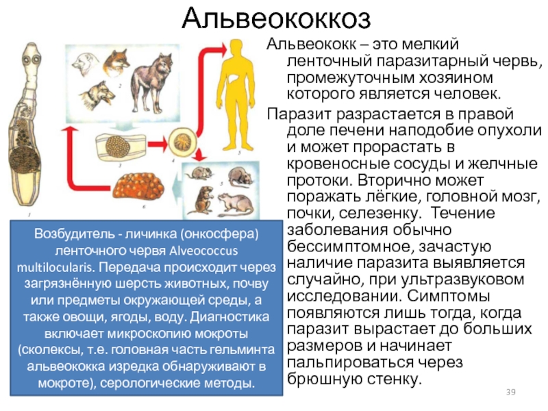 Альвеококк – это мелкий ленточный паразитарный червь, промежуточным хозяином которого