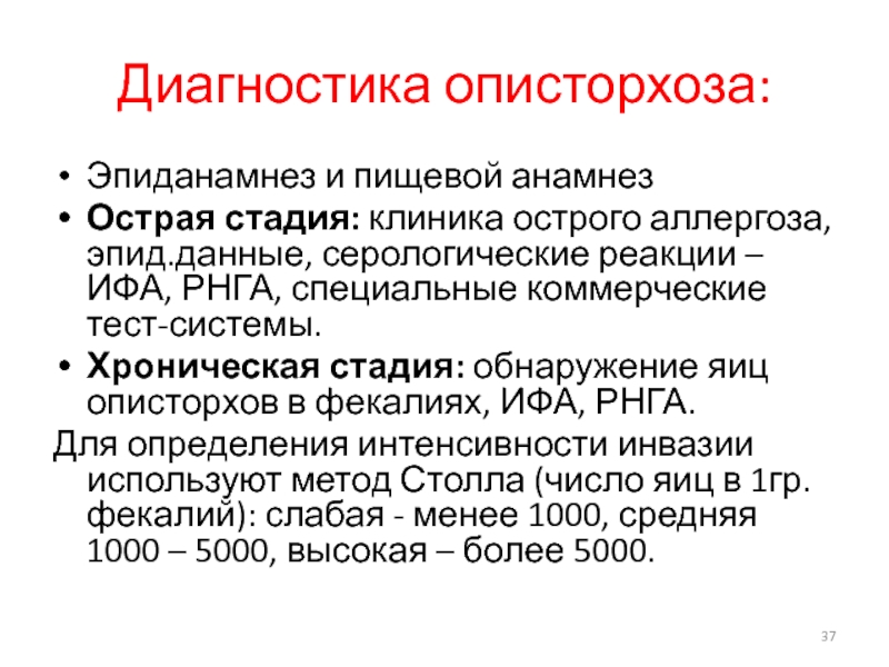 яиц описторхов в фекалиях, ИФА, РНГА.
