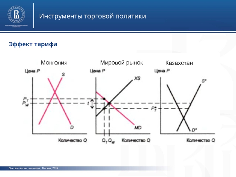 Высшая школа экономики, Москва, 2014Инструменты торговой политикиЭффект тарифаМонголияКазахстанМировой рынок