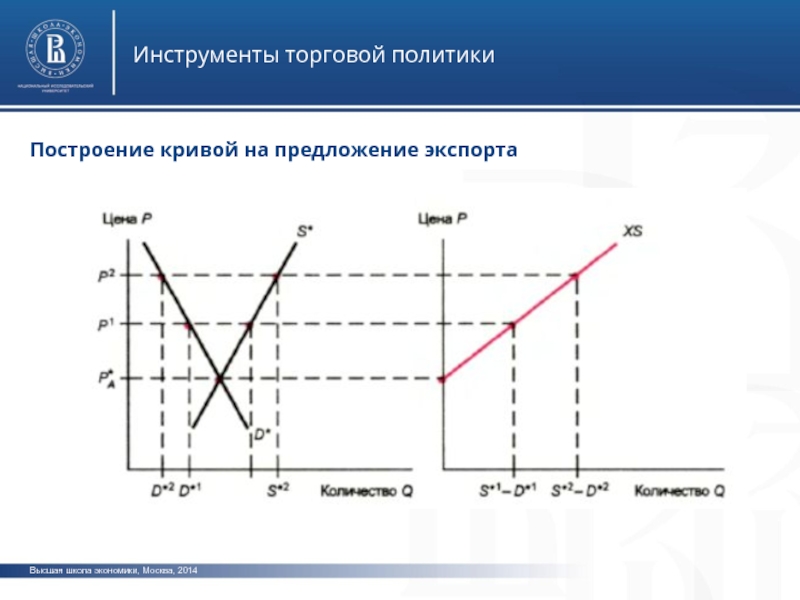 Высшая школа экономики, Москва, 2014Инструменты торговой политикиПостроение кривой на предложение экспорта