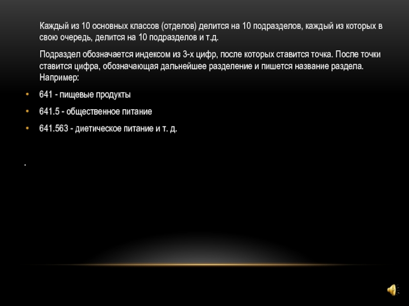 (отделов) делится на 10 подразделов, каждый из которых в свою