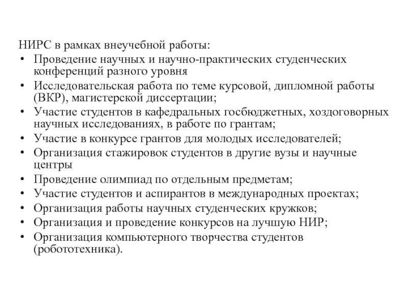 Слайд 13НИРС в учебное время включает в себя обучение: