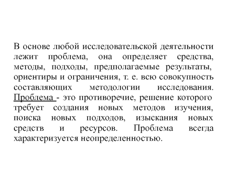 Слайд 22В основе любой исследовательской деятельности лежит проблема, она определяет средства,