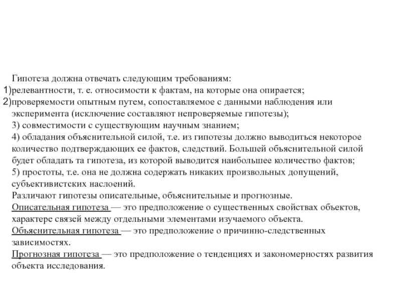 Слайд 29Гипотеза должна отвечать следующим требованиям: