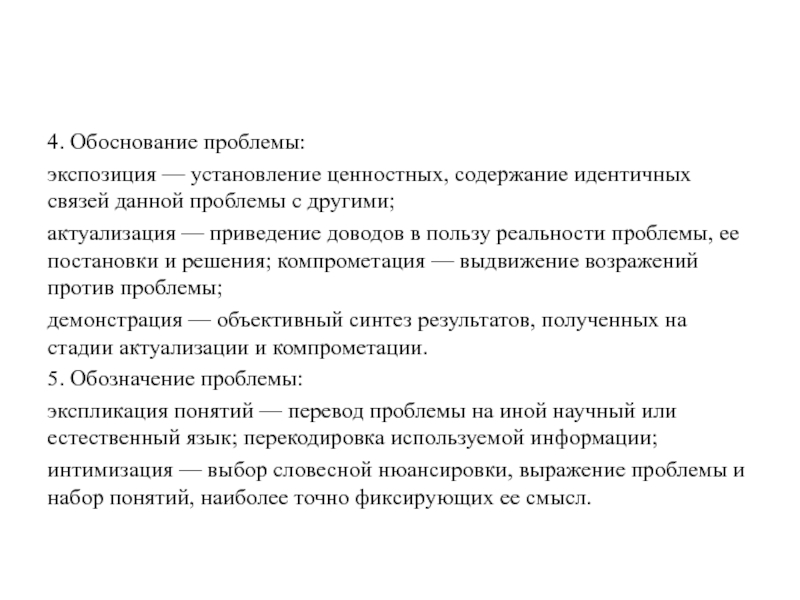реальности проблемы, ее постановки и решения; компрометация — выдвижение возражений против проблемы;