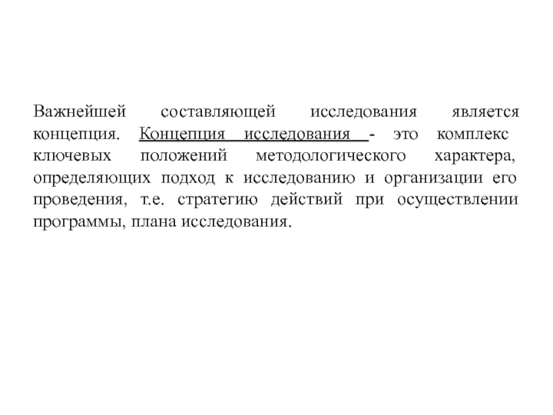 Слайд 31Важнейшей составляющей исследования является концепция. Концепция исследования - это комплекс