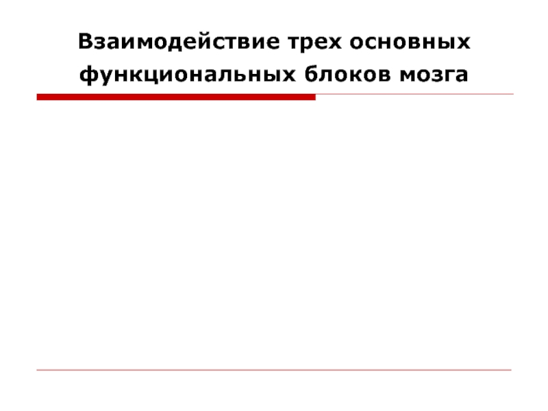 Слайд 28Взаимодействие трех основных функциональных блоков мозга