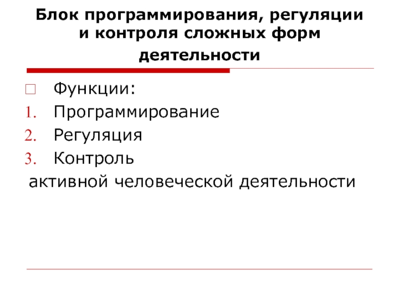 Слайд 22Блок программирования, регуляции и контроля сложных форм деятельности