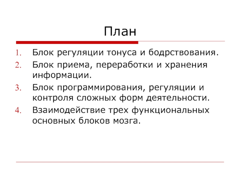 Слайд 5А.Р. Лурия выделил три основных функциональных блока мозга