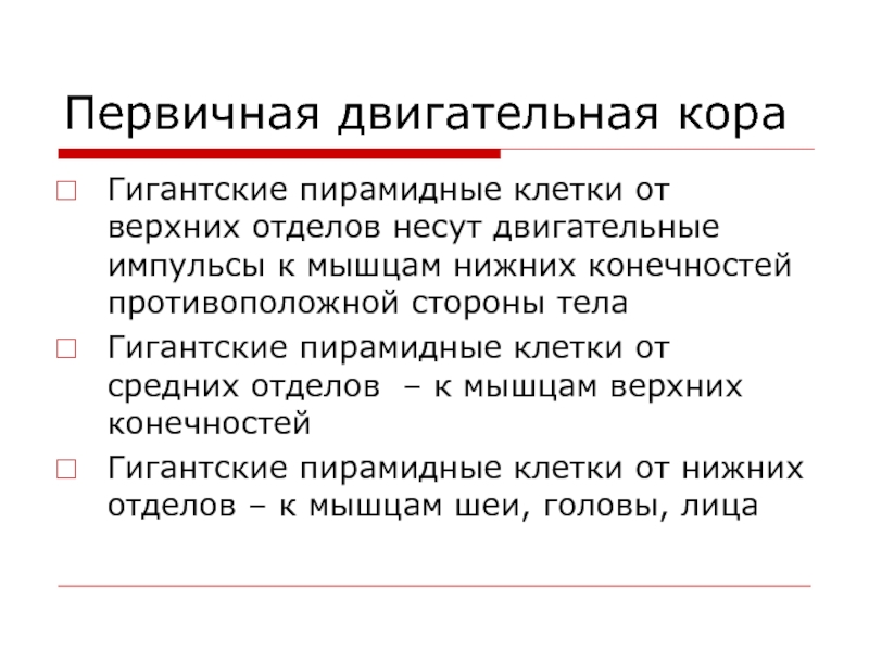 Гигантские пирамидные клетки от верхних отделов несут двигательные