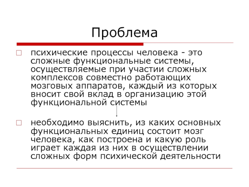 необходимо выяснить, из каких основных функциональных единиц состоит мозг человека, как построена и какую роль играет каждая из них в осуществлении сложных форм психической деятельности