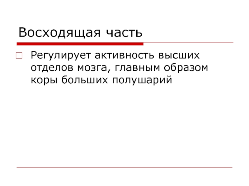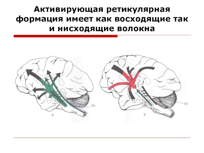 Слайд 11Активирующая ретикулярная формация имеет как восходящие так и нисходящие волокна