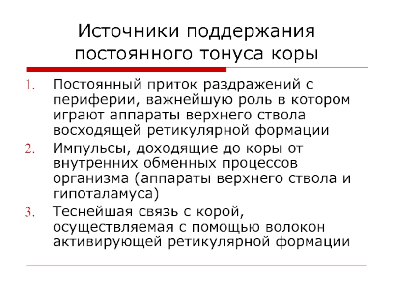 ретикулярной формации и древней коры, обеспечивает общий тонус (бодрствование) коры