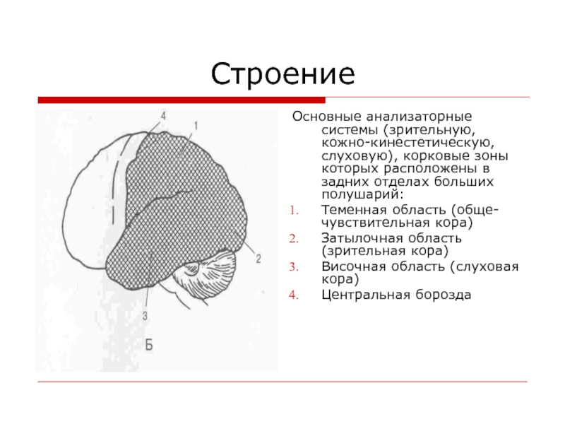 Основные анализаторные системы (зрительную, кожно-кинестетическую, слуховую), корковые зоны которых расположены