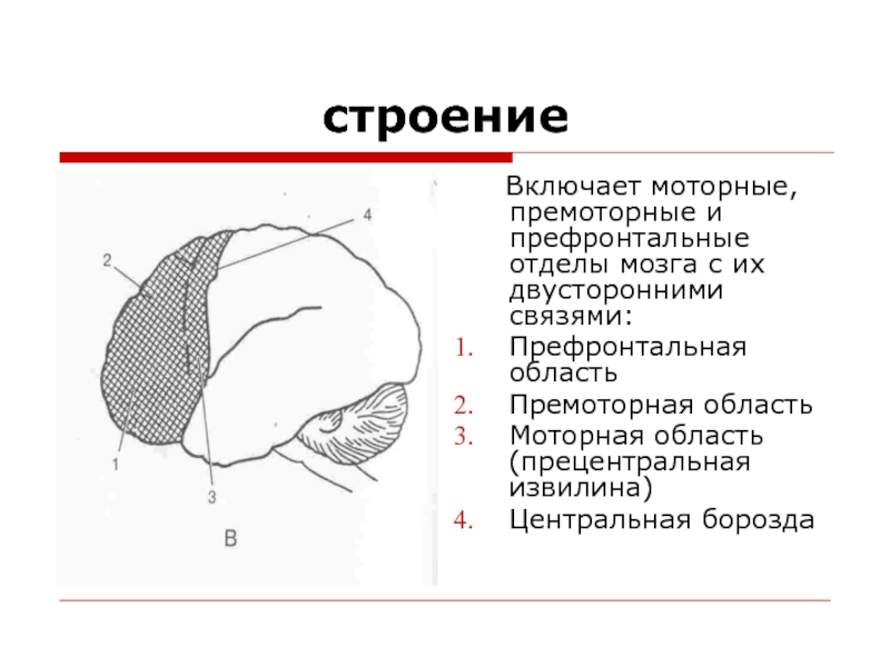 Включает моторные, премоторные и префронтальные отделы мозга с их двусторонними