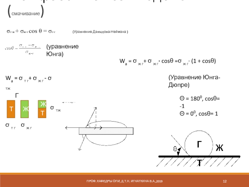 ΔЕ = Е1 - Е2 = σж-г + σт-ж - σт-г