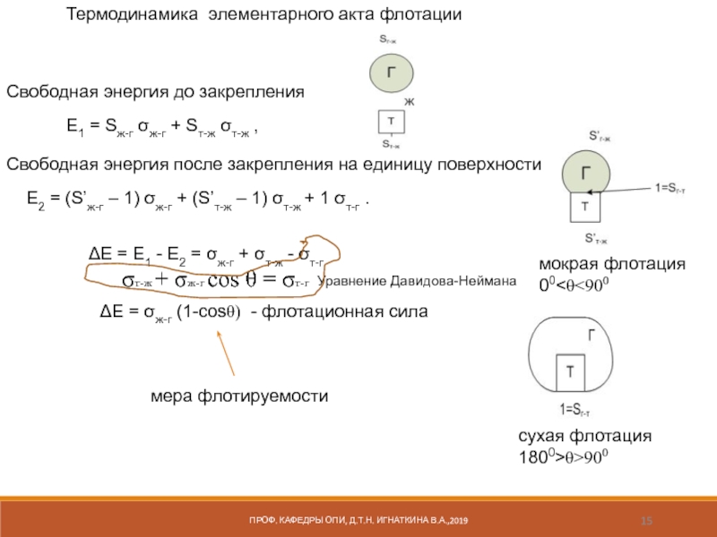 ΔЕ = σж-г (1-cosθ) - флотационная сила