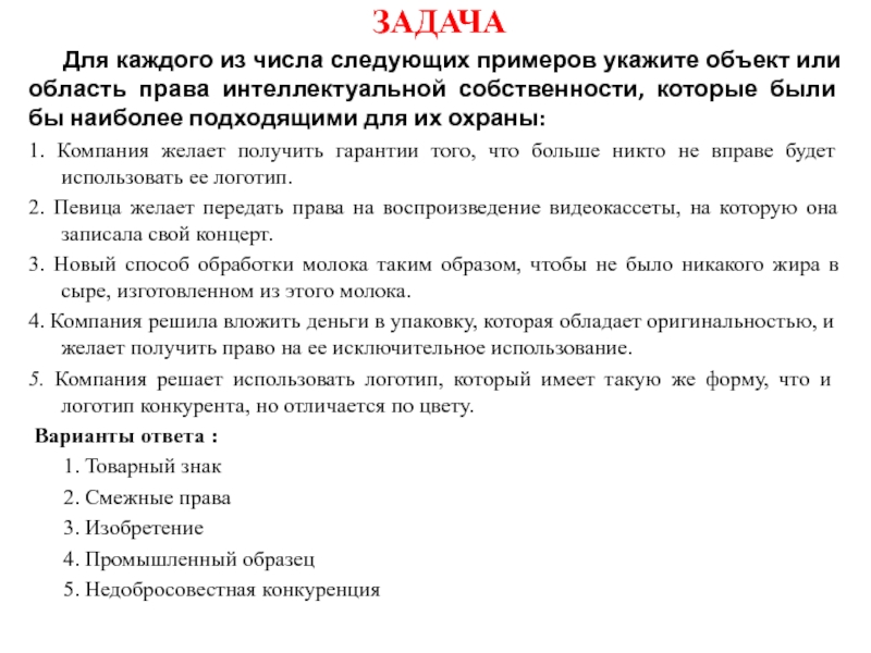 4. Товарные знаки предназначены для выделения продукции данного предприятия в массе однородных товаров и услуг и гарантирования качества и рекламы.