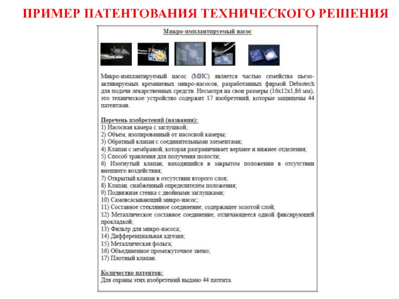 Слайд 13ПРИМЕР ПАТЕНТОВАНИЯ ТЕХНИЧЕСКОГО РЕШЕНИЯ