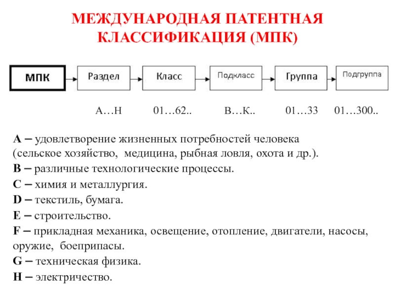 Слайд 42МЕЖДУНАРОДНАЯ ПАТЕНТНАЯ КЛАССИФИКАЦИЯ (МПК)