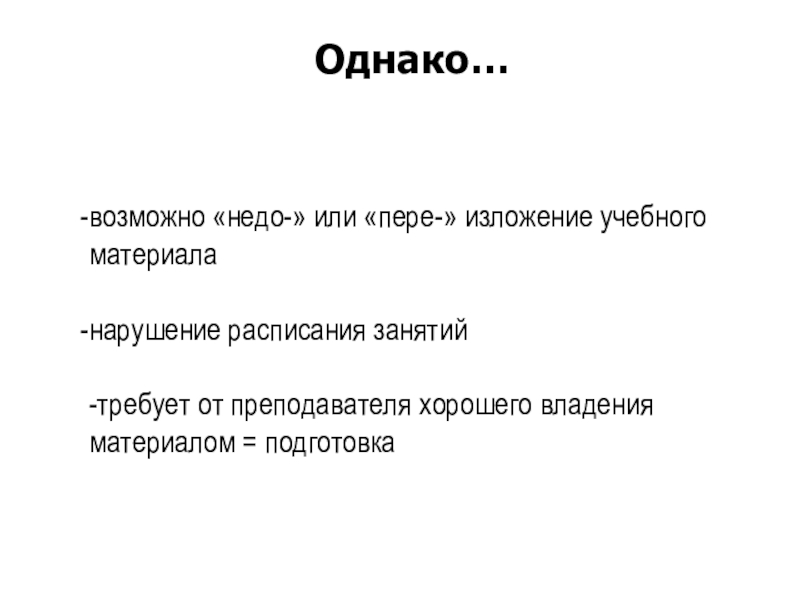 Слайд 26возможно «недо-» или «пере-» изложение учебного материала