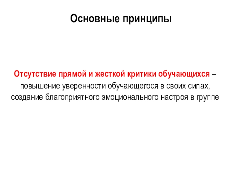 Слайд 15Отсутствие прямой и жесткой критики обучающихся – повышение уверенности обучающегося