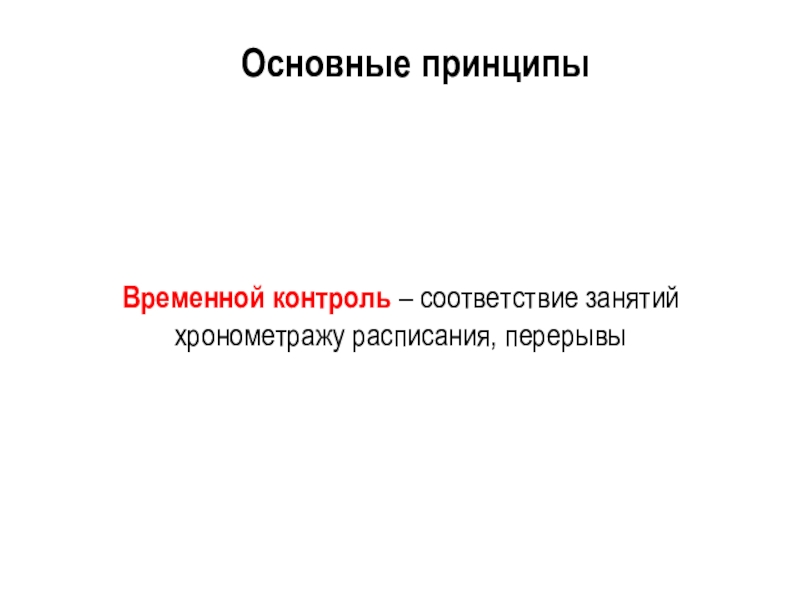 Слайд 18Временной контроль – соответствие занятий хронометражу расписания, перерывы