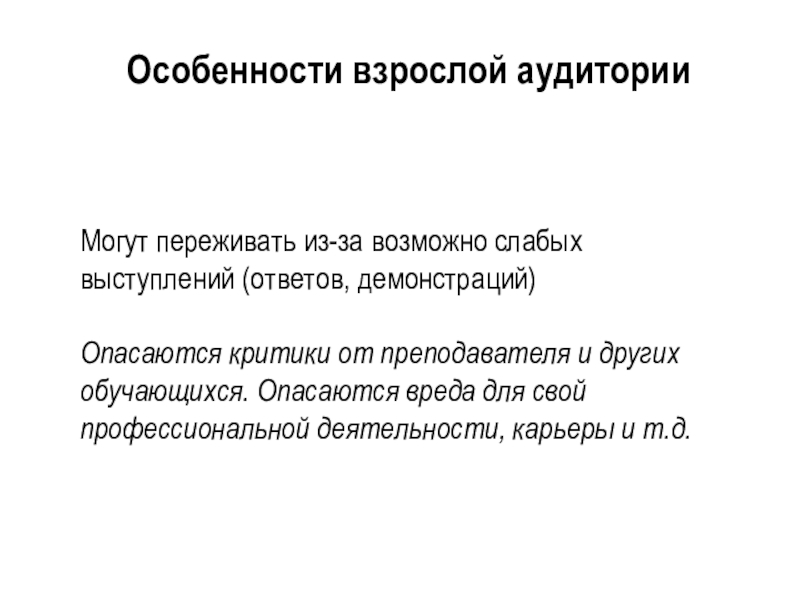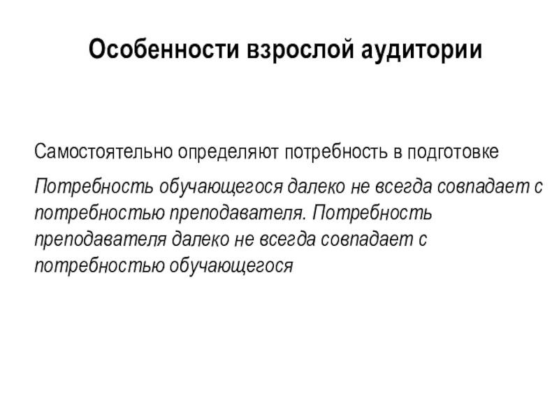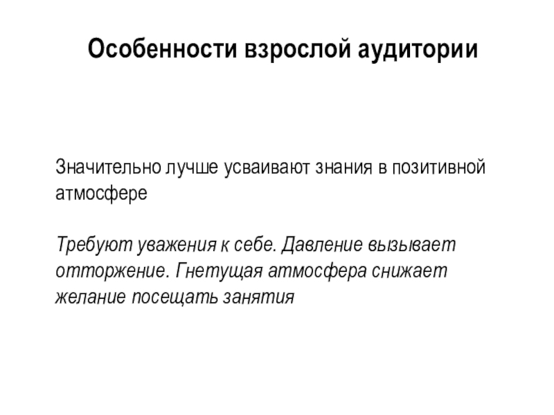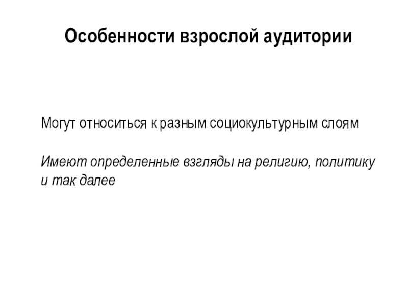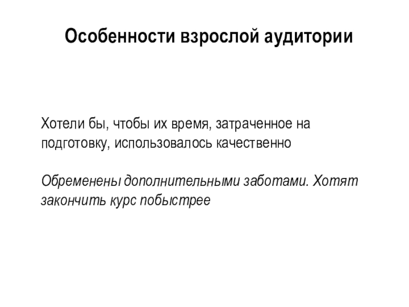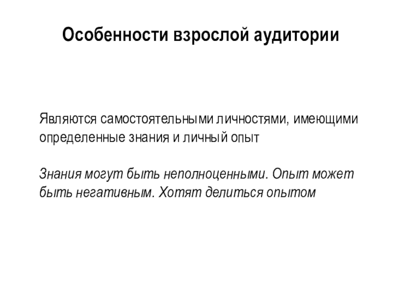 Слайд 3Особенности взрослой аудитории