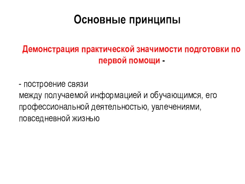 Слайд 11Основные принципы проведения подготовки по первой помощи